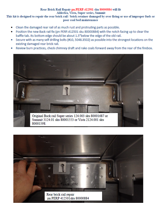 Pacific Energy Rear Brick Rail Repair Kit